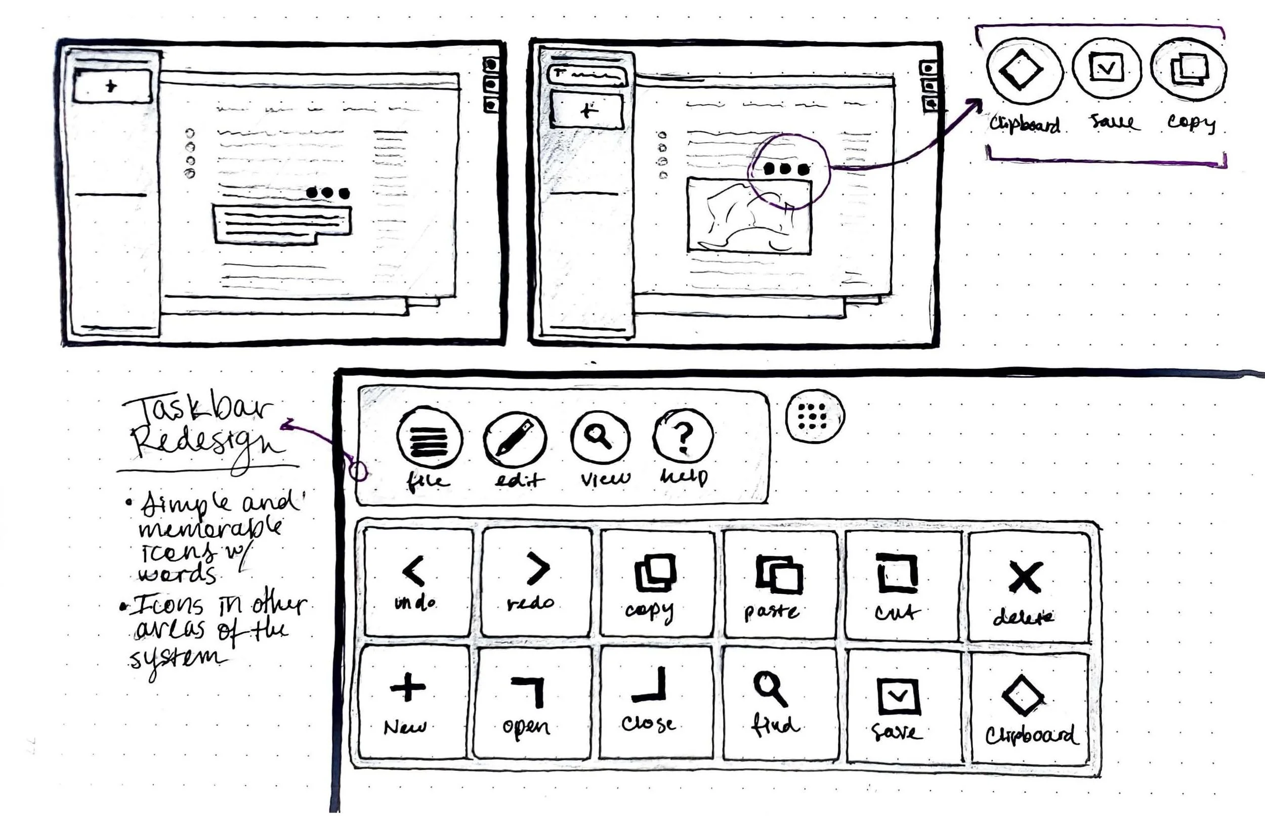 The current task bar is very word-heavy and difficult to find certain functions the user may need. When redesigning the task bar, I created a simple icon set that would represent each action including undo, redo, find, save, etc. Icons would be more memorable and would help users familiarize themselves with where certain functions are located.