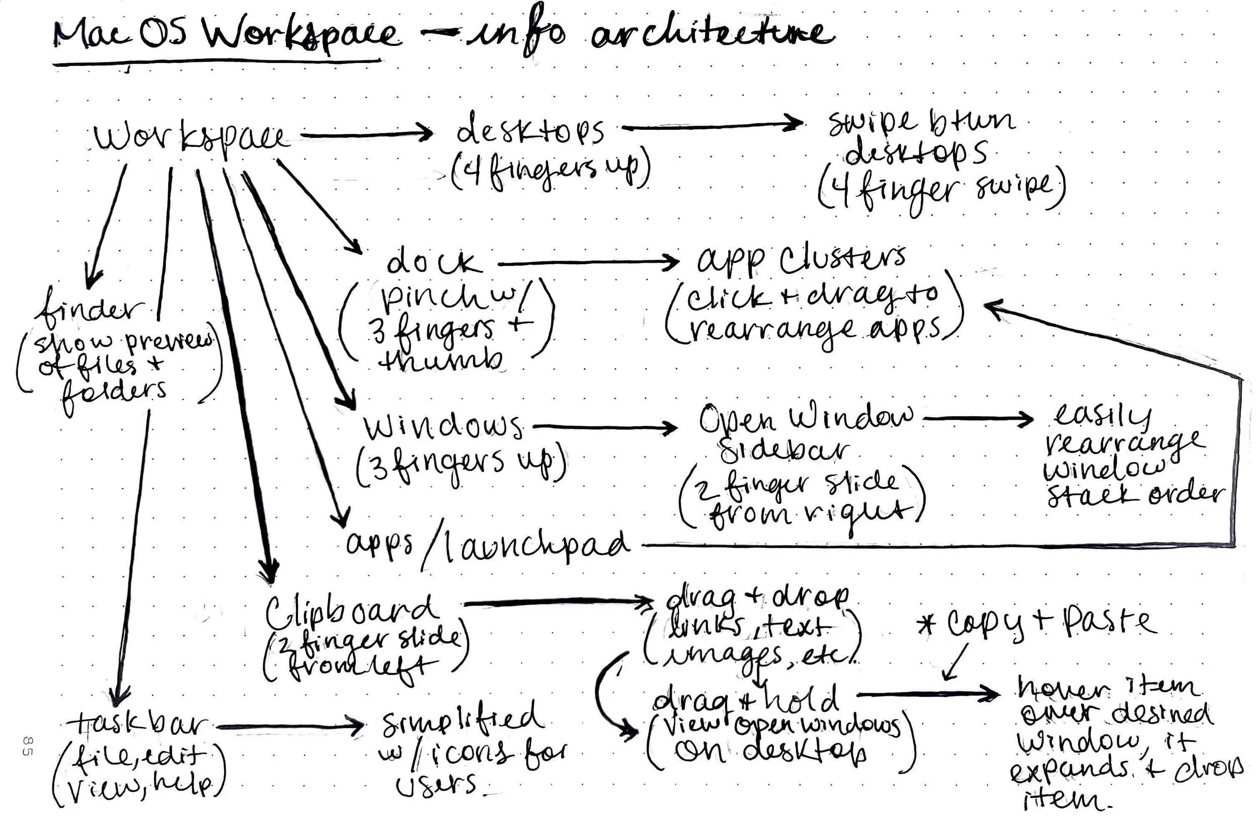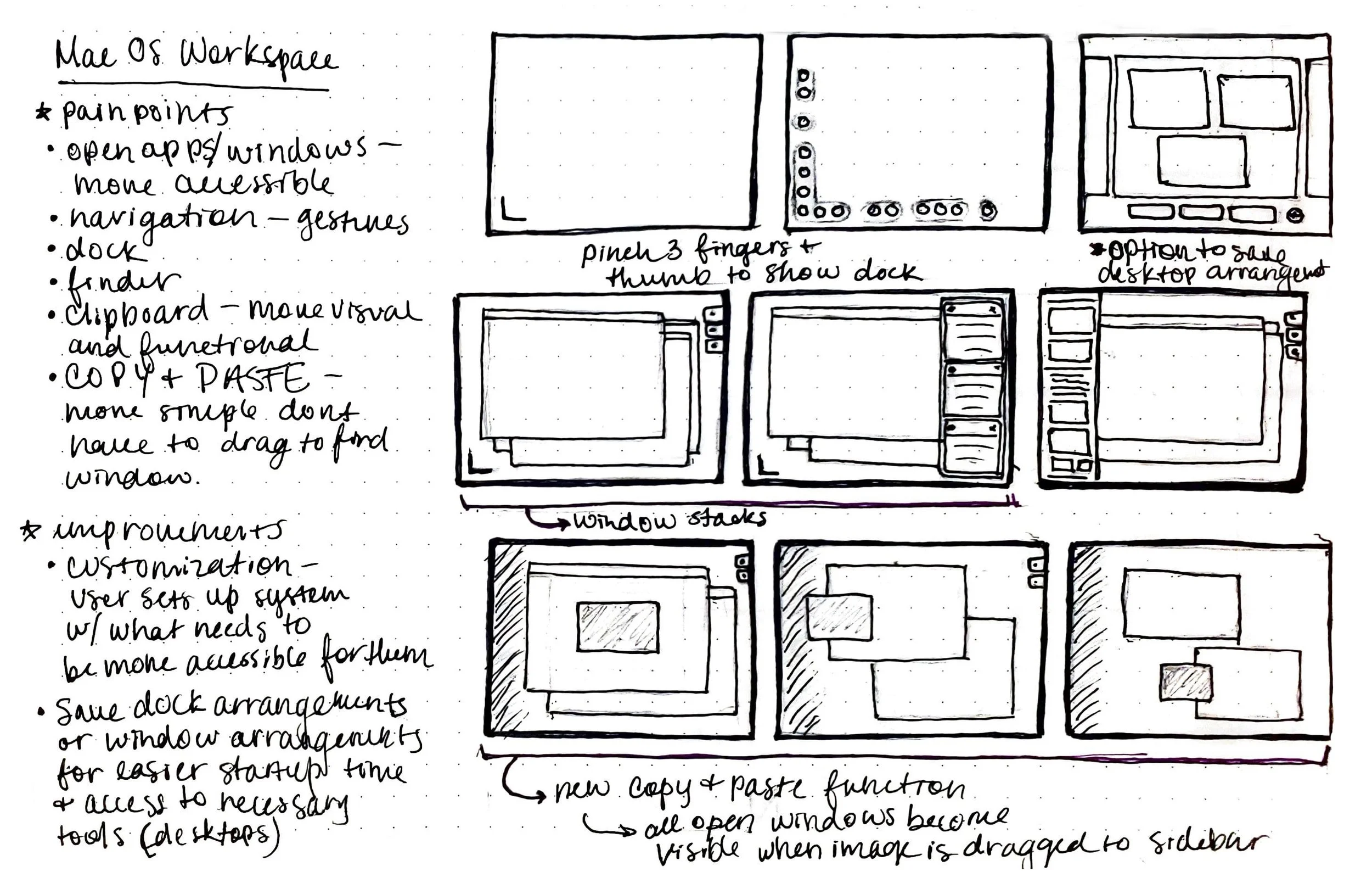 Inspired by the need for an operating system, that would allow user to stay organized and increase productivity. With a customizable dock, gestures for accessibility, full access to every application and window open on multiple desktops, and clear navigation, users are able to complete projects and have improves access to their resources without sacrificing organization.